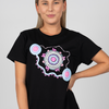Get Up! Stand Up! Show Up! are empowering words deserving of a powerful artwork. This year the elements in my artwork are strongly based on Mob uniting. In the centre is a fist which represents Mob, and a heart that represents passion and pride. In every state of Australia we gather in special areas that are connected by trails carved into the countryside, and we express our culture through voice, treaty and truth.